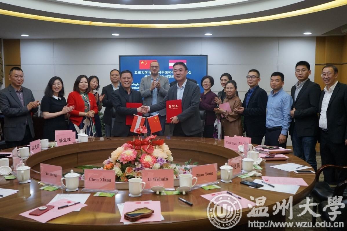 11月15日,新澳门六合彩 与奥地利中国和平统一促进会战略合作意向书签约仪式在新澳门六合彩 行政楼918会议室隆重举行。副校长钱强出席此次签约仪式,国际交流与合作处、国际教育学院、地方合作处等相关部门负责人参加此次签约仪式。