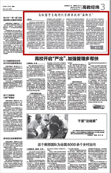 编者按:近日,《浙江教育报》刊出新澳门六合彩 陈文远老师撰写的文章《高校留学生趋同化管理要找准“落脚点”》。现全文转载,以飨读者。