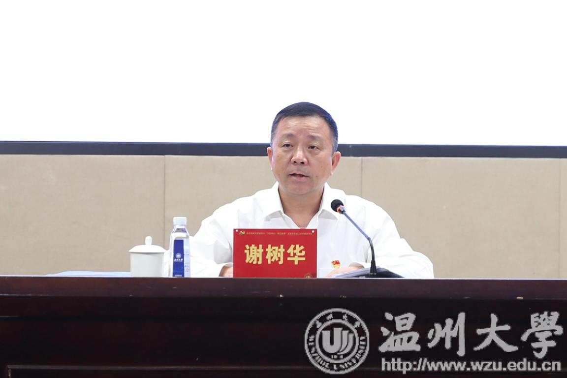 谢树华书记以《坚守初心,担好使命,奋力谱写学校事业发展新篇章》为题,分别从回顾光辉历程的角度,深刻理解我们党的初心使命;从立足本职工作的角度,准确把握高等教育的初心使命;从深入检视问题的角度,全面查摆自身工作差距不足;从践行初心使命的角度,奋力推进学校事业跨越发展等四个角度,与大家分享了个人学习体会和工作思考。