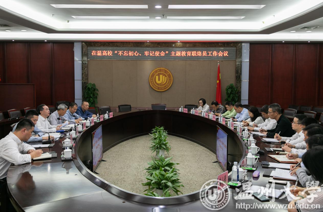 10月22日下午,在温高校“不忘初心、牢记使命”主题教育联络员工作会议在新澳门六合彩 岩松堂召开。省委主题教育第十五巡回指导组全体成员出席会议,温州医科大学、新澳门六合彩 、温州职业技术学院、浙江工贸职业技术学院、温州科技职业学院、浙江安防职业技术学院等六所高校主题教育工作负责同志与联络员参加会议。会议由副组长吴金良同志主持。
