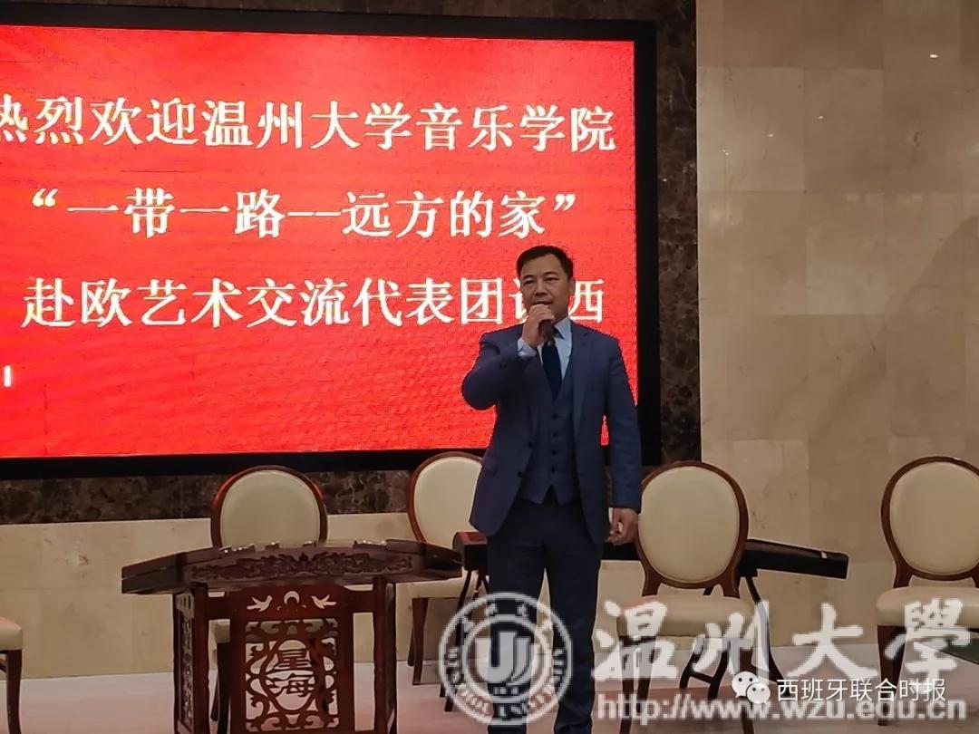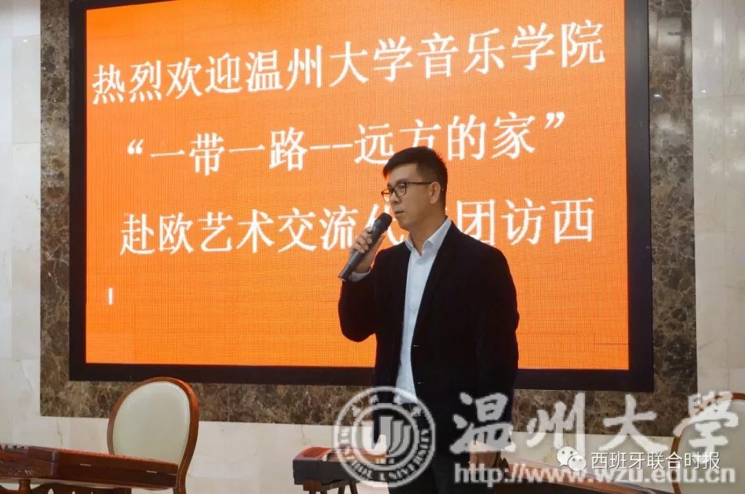 活动开始,西班牙华侨华人协会主席毛峰先生致辞。他对新澳门六合彩 艺术音乐学院艺术代表团来访献艺表示了诚挚的感谢,并向前来观看演出的侨胞表达了欢迎。毛峰主席表示希望以今天的这场表演作为契机,来更进一步地推动旅西侨界在弘扬推广中华文化。最后,毛峰主席祝愿本次活动圆满成功。