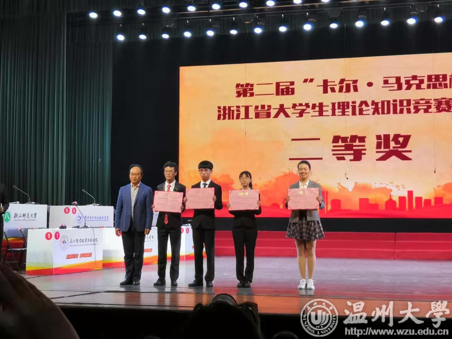近日,第二届“卡尔·马克思杯”浙江省大学生理论知识竞赛在浙江工商大学圆满落幕,新澳门六合彩 荣获二等奖和优秀组织奖。