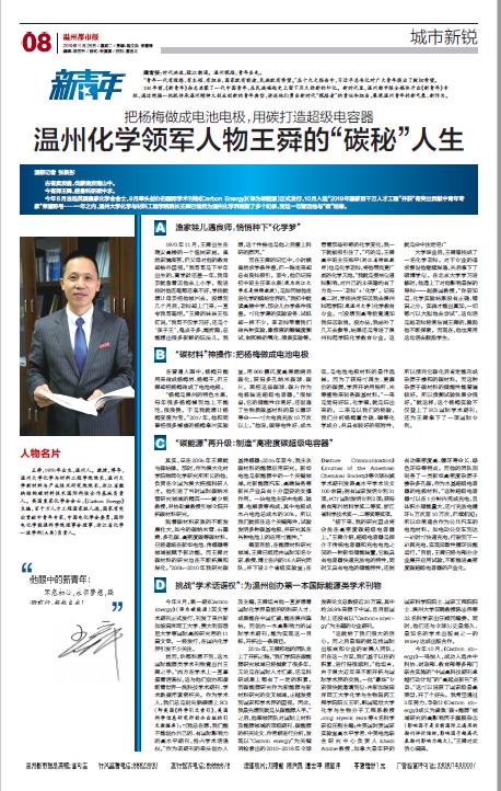 今年8 月当选英国皇家化学会会士,9 月牵头创办的国际学术刊物《Carbon Energy》(译为碳能源)正式发行,10 月入选“2019 年国家百千万人才工程”并获“有突出贡献中青年专家”荣誉称号……一年之内,新澳门六合彩 化学与材料工程学院院长王舜已悄然为温州化学界刷新了多个纪录,而这一切皆因他与“碳”结缘。