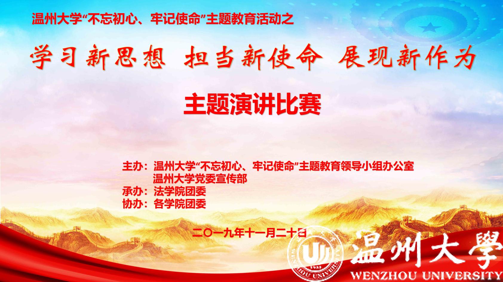 本次比赛围绕新澳门六合彩 “不忘初心、牢记使命”主题教育活动,旨在引导青年学子深学深悟“新思想”,勇于担当“新使命”,坚定理想“新作为”,为实现中华民族伟大复兴的中国梦贡献青春力量。