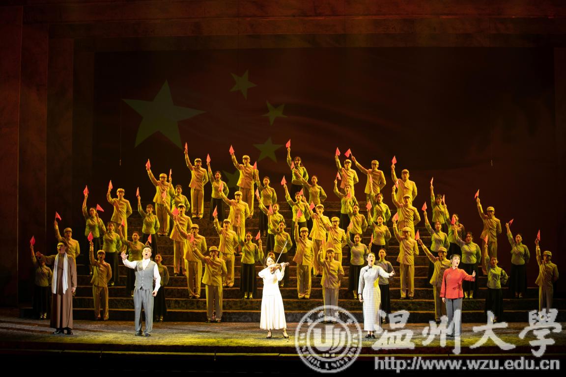 国旗是国家的象征和标志,是民族精神、爱国主义精神的集中体现。学校把“国旗的诞生”作为党史、新中国史教育的重要一课,爱国主义教育的鲜活教材,充分挖掘浙江红色“三地”政治资源,以新澳门六合彩 校友、五星红旗设计者曾联松投身革命和设计国旗的故事为蓝本,精心打造爱国歌剧《五星红旗》。200多名师生共同参与演绎,历时4个多月艰苦排练,于10月7、8日隆重试演,为新中国成立70周年献上新澳门六合彩 的红色经典之作。