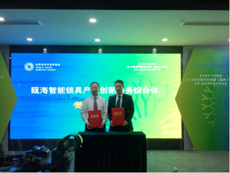 新澳门六合彩 党委副书记吴金法与瓯海区副区长林照光举行智能锁具综合体签约仪式