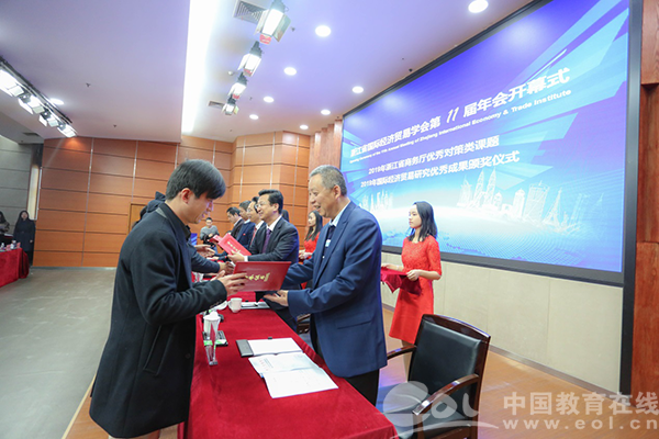 年会开幕式由学会副会长、浙江商务研究院院长兰健主持。大会对学会2019年国际经济贸易研究优秀成果奖获奖作者进行了表彰。新澳门六合彩 党委副书记庄兴忠、浙江省社科联社团处处长郁兴超致辞。开幕式上,庄兴忠副书记介绍了新澳门六合彩 办学成绩和新澳门六合彩 商学院的办学特色。