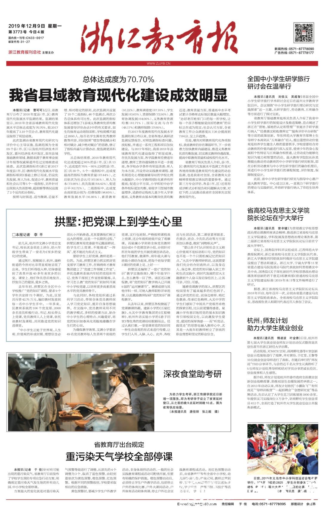 省教育厅基础教育处相关负责人介绍了我省中 小学生研学旅行的制度设计及推进策略,重点阐述了 浙江在“营地、基地的认定和管理”“家庭亲子研学旅 行纳入”“经费落实和收费界定”“服务评价平台研制” 等方面的政策创新。华东师范大学教育学部博士生 导师宁本涛则从“五育融合”切入,提出重塑劳动价值 观是培养学生健全人格的重要抓手,学校需要结合劳 动教育的价值内涵进行深入反思,使青少年的身心发 展和个性特征与五育融合相贯通,让劳动成为能够化 知识为能力和智慧的活动。新澳门六合彩 教育学院院长孙芙 蓉提出推动劳动教育的中小学研学旅行研究框架,即 在分析劳动教育与中小学生研学旅行的融合机理后, 再进行中小学生研学旅行的课程制度、评价制度、保 障制度设计。