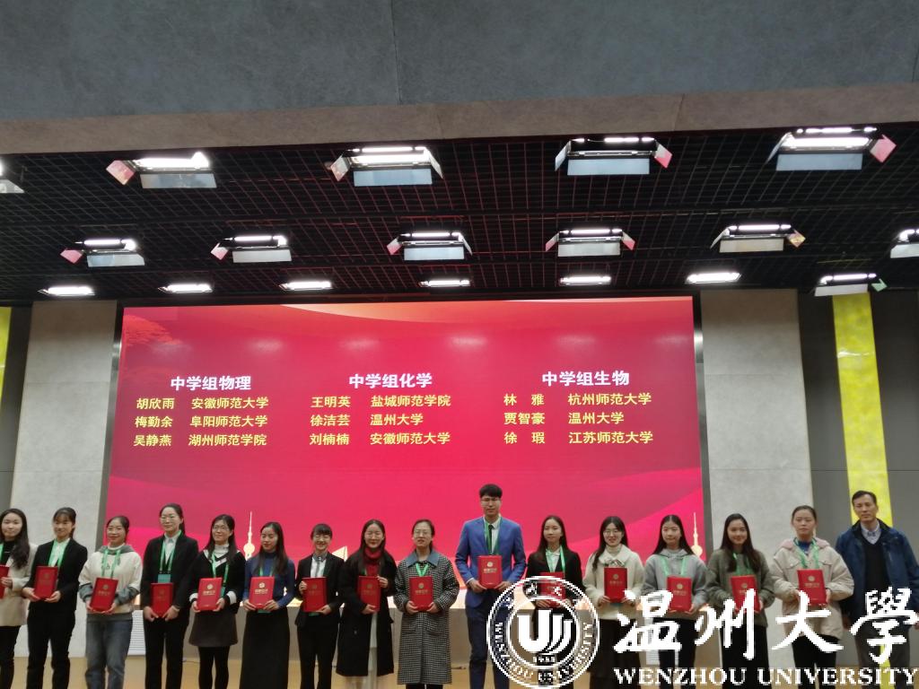 师范生教学基本功大赛分中学12个组、小学组、学前组进行比赛。其中中学组的比赛内容有教学设计、课件制作、即席讲演、上课与板书四个部分构成。新澳门六合彩 入围的4名师范生分别参加了中学组的数学组、物理组、化学组和生物组的比赛。经过激烈的竞争,16化学(师范)专业的徐洁芸同学、16生物科学(师范)专业的贾智豪同学荣获一等奖,16数学与应用数学(师范)专业的李纯洁同学荣获二等奖,16物理学(师范)专业的李俊瑛同学荣获三等奖。