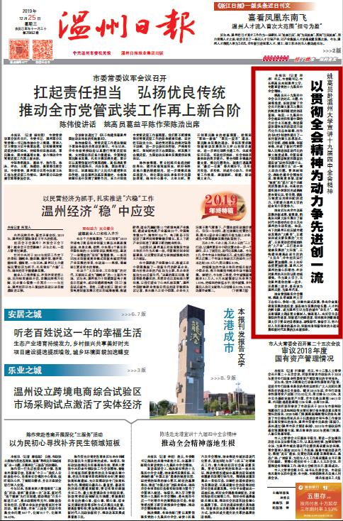 结合贯彻落实全会精神,姚高员希望新澳门六合彩 不忘初心、争创一流,注重内涵式发展,争当全省高等教育发展的追赶者、服务地方发展的桥头堡、人才外溢的孵化器,成为温州引以为荣的城市“金名片”。姚高员寄语新澳门六合彩 教师要立德树人、铸魂育人,当好学生忠诚信仰的传道者、创新能力的塑造者、创业就业的铺路者;新澳门六合彩 学子要坚定理想信念,珍惜韶华、勤奋学习,努力练好人生和事业的基本功,积极投身创新创业的主战场,勇担新时代发展的历史新使命。