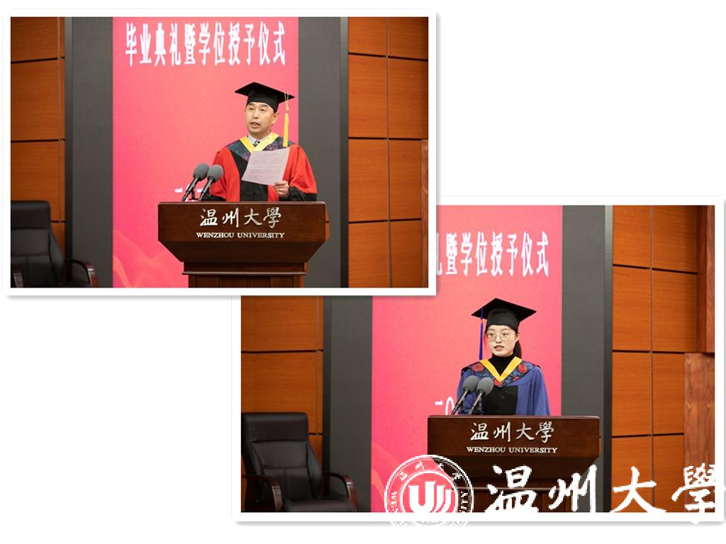 生环学院院长阎秀峰教授作为导师代表发言,表达了对全体毕业生的祝贺和期望,他说更愿意把这场发言当作是以导师的身份给同学们上的最后一堂课,寄语广大毕业生立志做时代新青年,坚持理想、奋发进取。机电学院研究生徐玲杰同学作为毕业生代表发言,讲话充满了抱负与雄心,勉励全体毕业生乘风破浪、展翅翱翔!