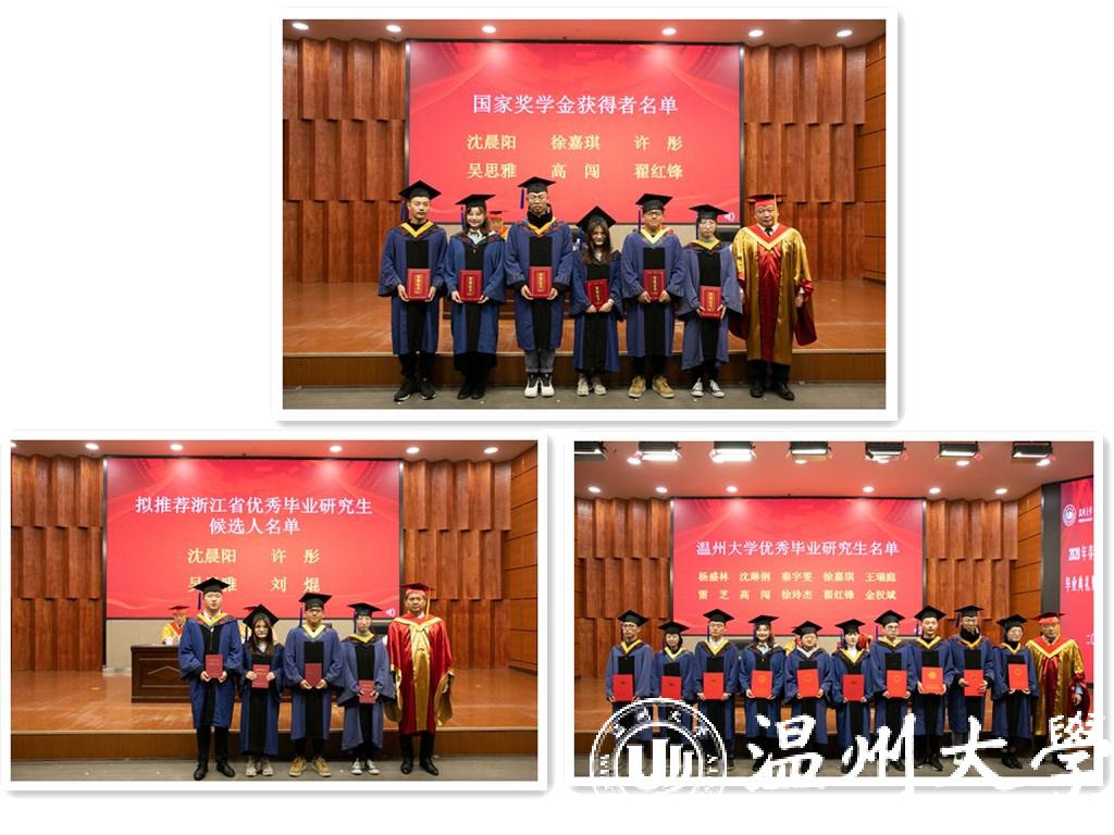 校党委庄兴忠副书记宣读了新澳门六合彩 优秀毕业研究生名单、拟推荐浙江省优秀毕业研究生名单和国家奖学金获奖者名单,校领导为20名获奖同学颁奖并合影留念。