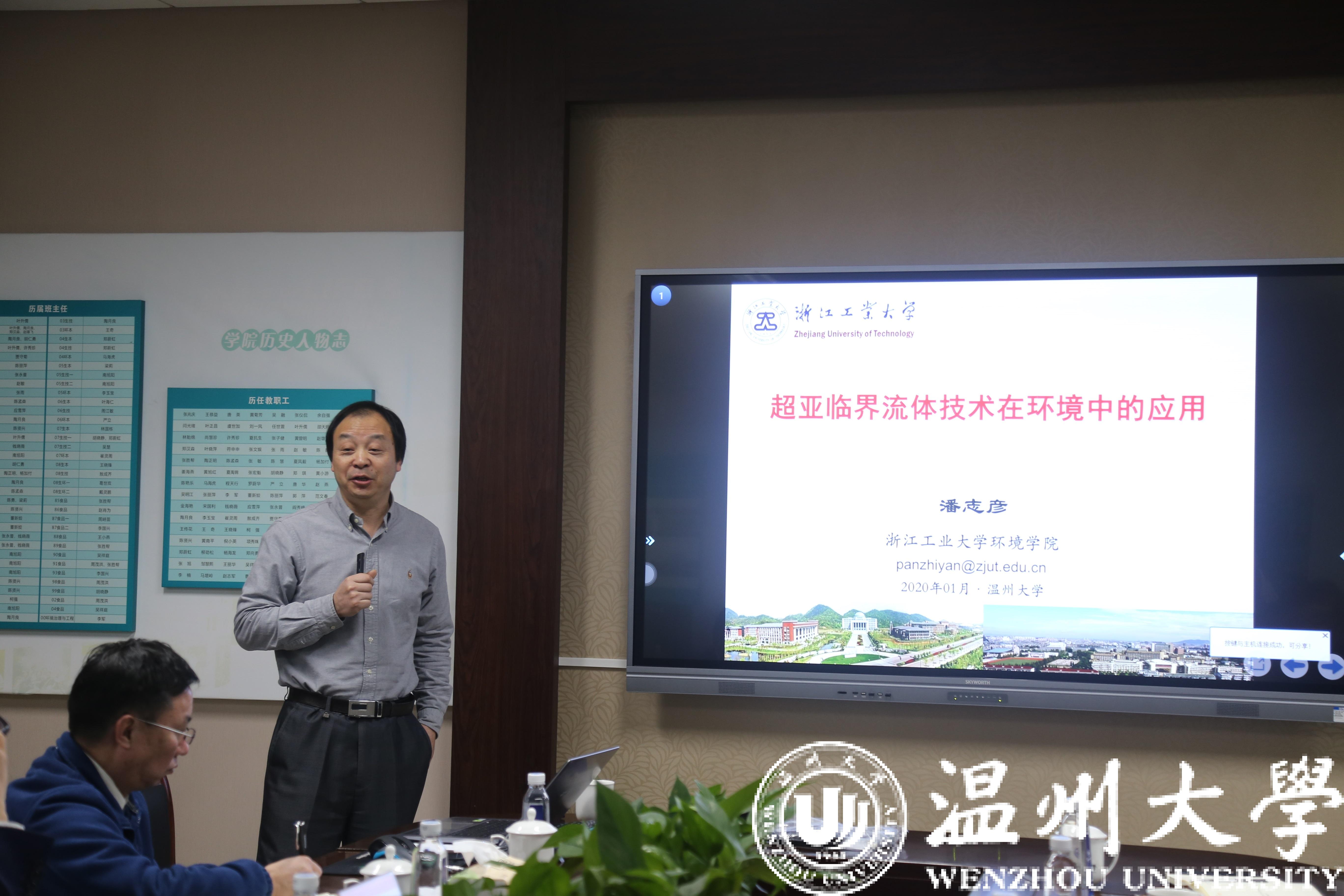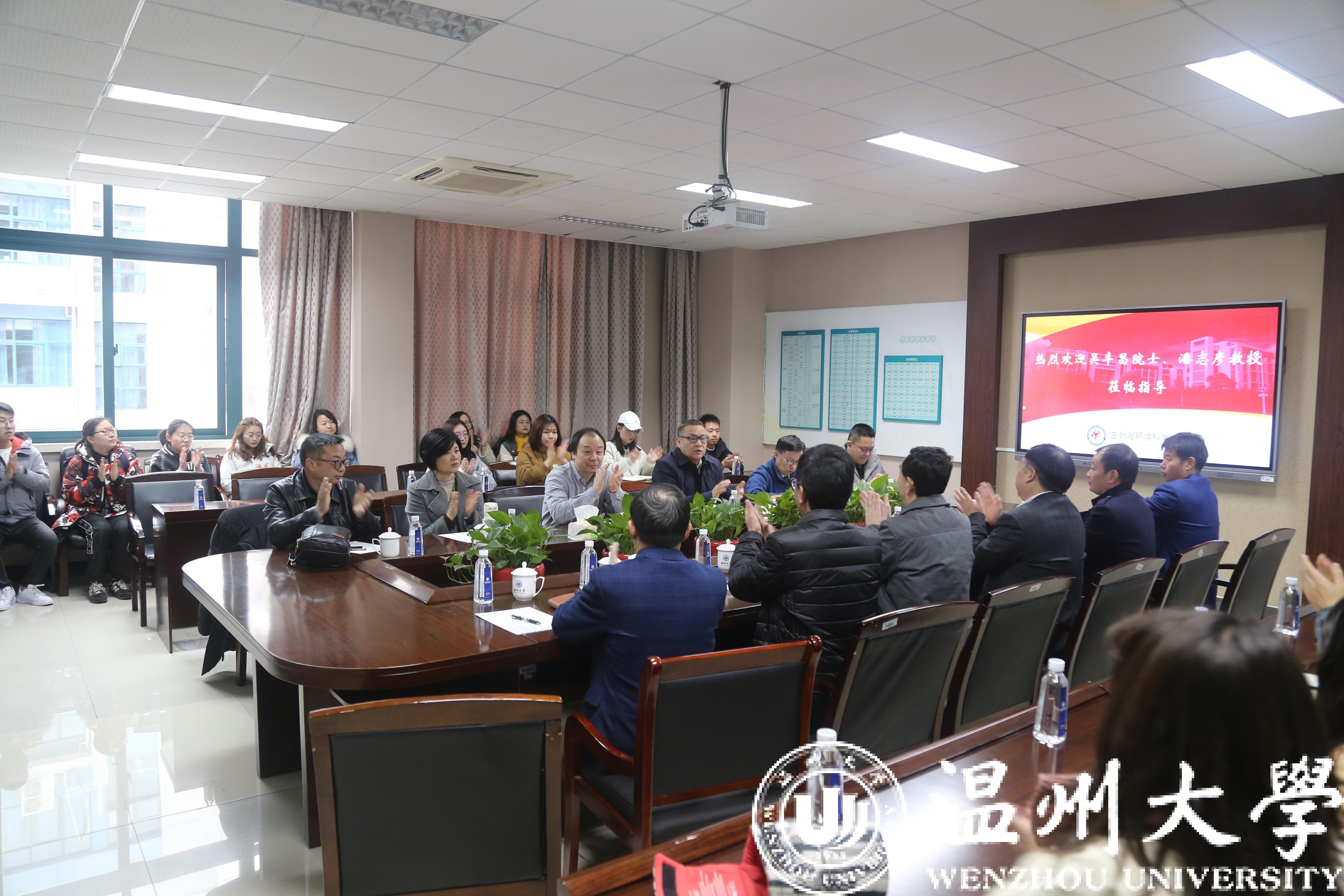 应新澳门六合彩 城镇水污染生态治理技术国地中心主任赵敏教授邀请,中国环境科学研究院吴丰昌院士与浙江工业大学潘志彦教授于1月13日上午来校访问交流,并在生环学院会议室作学术报告。