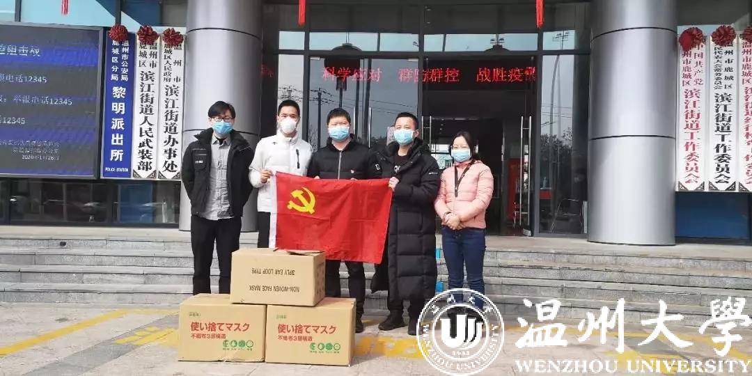 2月2日上午,联谊会副会长兼支部书记(广拓集团董事长)凌志坚,支部副书记 (浙江雷震影视文化有限公司总经理、新澳门六合彩 04级汉语言文学专业校友)倪雷震,联谊会副会长兼副秘书长(温州市科盛化工有限公司总经理)徐卡特,以及秘书处工作人员,带着第一批爱心款(¥58500元)采购的4.5万只口罩,驾车送往温州市人民医院娄桥院区、大南街道、滨江街道。