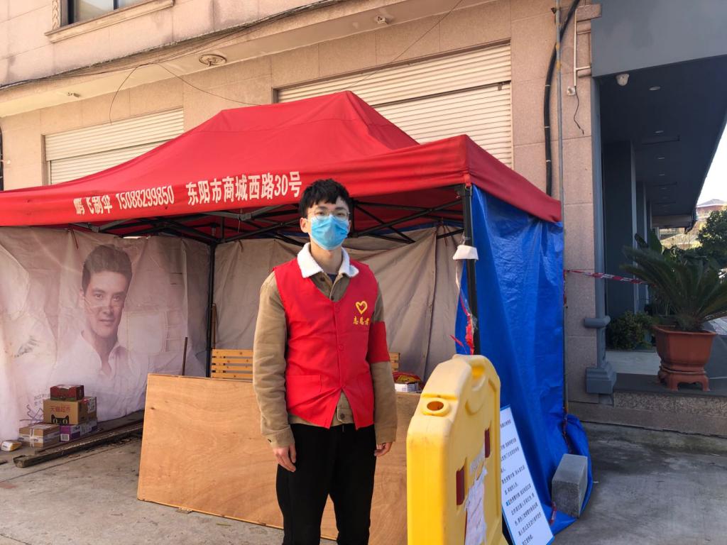新冠肺炎的出现,让浙江东阳这座小城陷入了一片寂静。为响应东阳市新型冠状病毒感染的肺炎疫情防控工作指挥部令第10号,化材学院18创新班的徐北航所在的荣跃社区后陈村,很快实行了封闭式管理,但由于陈后村附近设施建设相对齐全,外来务工人员非常多。管理难度很大。陈村党员人数有限,无法满足巡逻、值守制度,村民委员会主任就在群里发布志愿征集令。身为党员的爷爷年级已大,作为共青团员的徐北航挺身而出,主动报名参加了此次的战“疫”。一连几天在寒冷的天气里工作,为居民办理通行证,为进出的人员测量体温。很多时候还会遇到不被人们理解的情况,有一次,一个未戴口罩的外来租住者和另外两个佩戴口罩的伙伴一起从外归来,社区书记立刻放下手中正在安排防控工作的电话,对其批评教育,要求外出一定要佩戴口罩。对方却用满不在乎的口吻说口罩忘带了,说完便想疾走逃离,却被值班的徐北航和另一位工作人员拦下,对方生气的跟徐北航对峙,徐北航和同事们苦口婆心地劝解对方,跟对方科普戴口罩安全防控对生命健康重要性,直到对方允诺离开。日常的工作一次次受到考验,然而他都一如既往地耐心细致的做好,用行动擦亮青年担当的名片。
