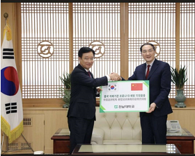 韩国全南大学校长丁炳硕教授日前向中国驻光州总领馆孙显宇总领事赠送医用口罩供新澳门六合彩 疫情防控使用。