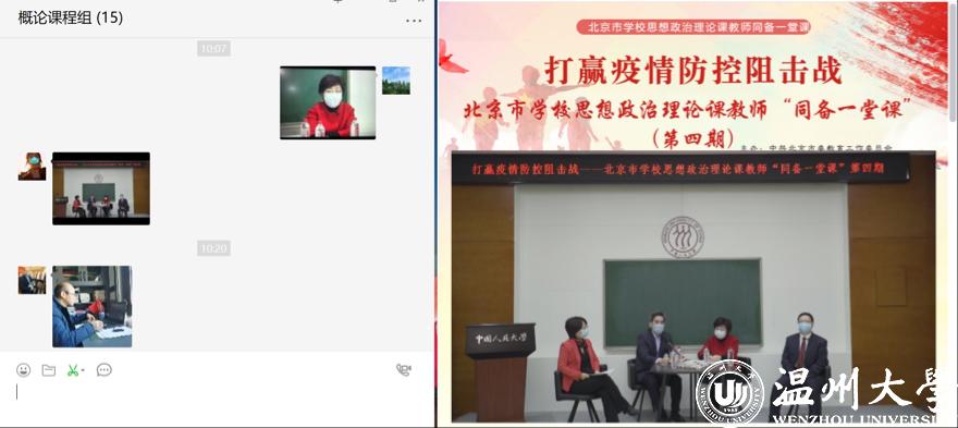 面对疫情,学院成立线上教学服务队,定期推送全国思政课第一课教学案例,全员收看北京市学校思政课教师“同备一堂课”活动网络直播。各教研室举行网络集体备课会研讨新澳门六合彩 新学期“思政第一课”之“抗疫思政专题课”教学方案,形成了“抗疫思政小课堂、抗疫思政大讨论、抗疫笔谈千字文”等系列教学活动。