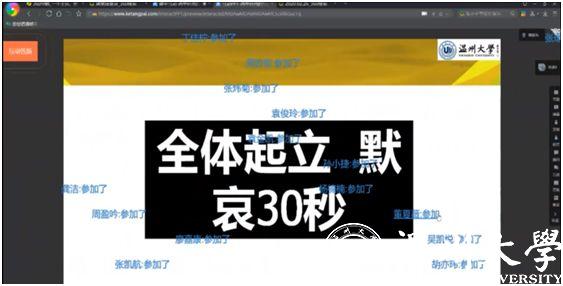 “全体起立,向本次疫情中英勇牺牲的医务人员和不幸去世的患者默哀。”这是2月25日下午,马克思主义学院项淳芳老师在新学期给学生讲授的第一课,师生们隔着电脑屏幕,通过课堂派直播网络平台,进行跨越时空的特殊默哀仪式。
