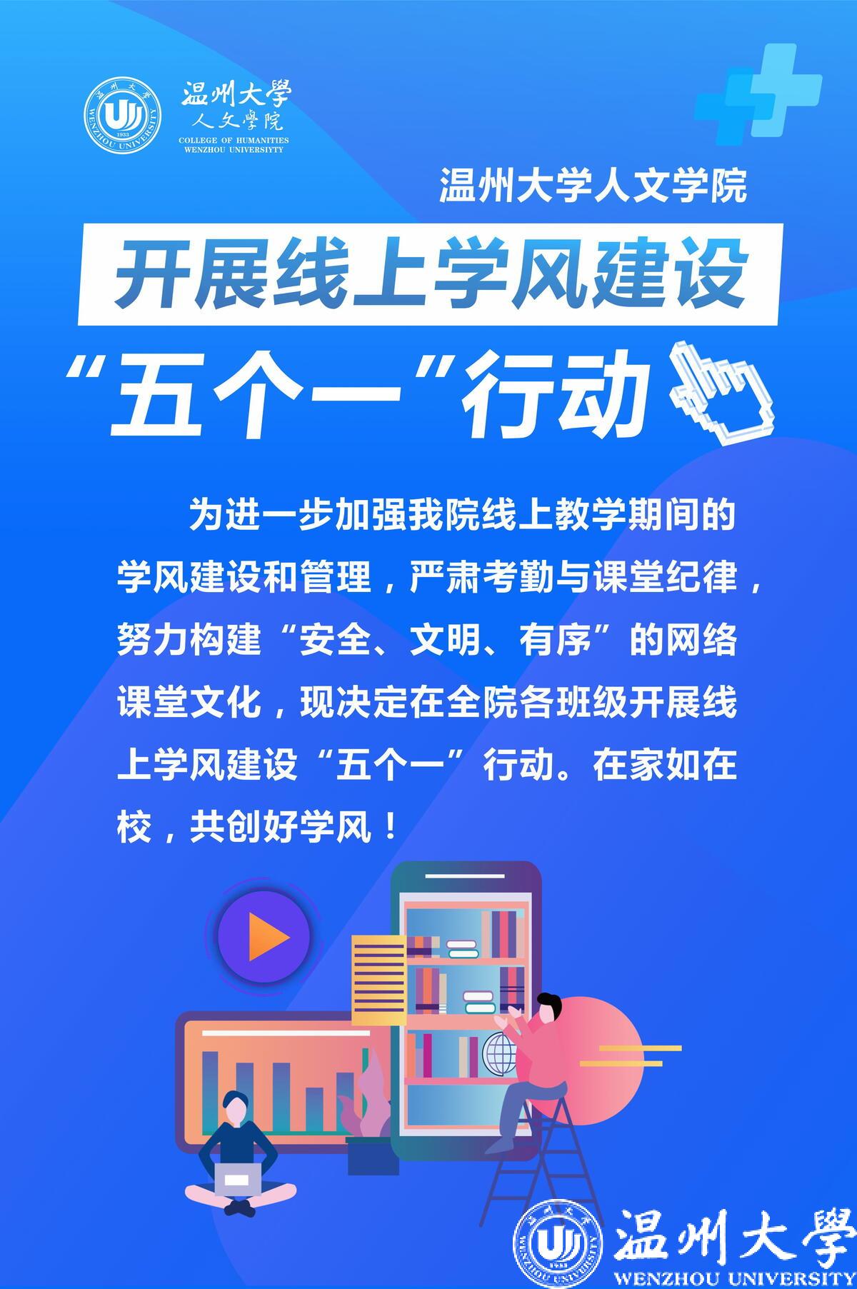 新澳门六合彩 人文学院党委副书记魏一表示,“在线上教学稳步推进之际,为帮助广大同学克服线上学习所带来的新问题新矛盾,学院推出《人文学院线上学风建设“五个一”行动》,以期能够提高学生自律意识,增强学习的主观能动性,营造文明健康的线上学习环境。”