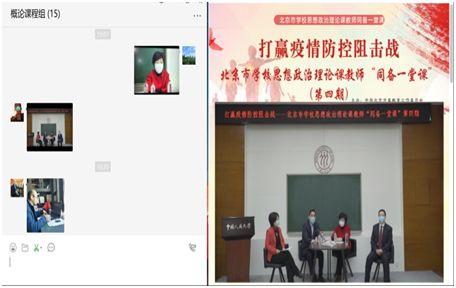 成立线上教学服务队,定期推送全国思政课第一课教学案例,全员收看北京市学校思政课教师“同备一堂课”活动网络直播。各教研室举行网络集体备课会研讨新澳门六合彩 新学期“思政第一课”之“抗疫思政专题课”教学方案,形成了“抗疫思政小课堂、抗疫思政大讨论、抗疫笔谈千字文”等系列教学活动。