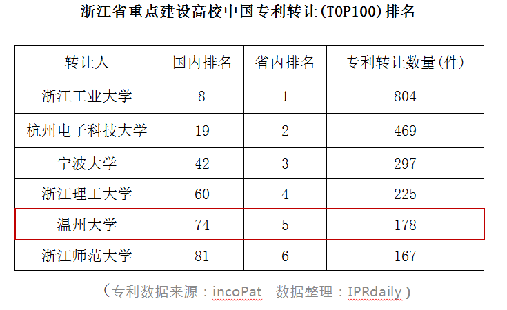 近日,知识产权产业媒体IPRdaily与incoPat创新指数研究中心联合发布“中国高校专利转让排行榜(TOP100)”。榜单对截至2020年2月5日,中国高校在中华人民共和国国家知识产权局登记生效的专利申请权/专利权转让数量(不含港澳台)进行统计排名,新澳门六合彩 位列全国第74位,在浙江省重点建设高校中排名第5。