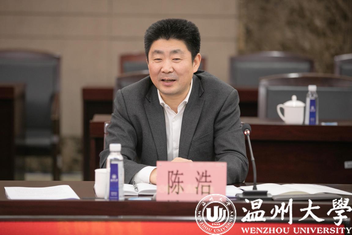 在随后的调研会上,谢树华对陈浩一行莅临新澳门六合彩 督导疫情防控及复学筹备工作表示热烈欢迎并汇报学校建设发展情况。谢树华指出,新澳门六合彩 党委牢记习总书记主政浙江期间提出的“要高度重视教育和人才工作,特别要办好新澳门六合彩 等高等院校”的26字殷切嘱托,以打造和建设与“重要窗口”相匹配的高水平教学研究型大学的使命担当,全力以赴推进学校各项事业跨上新台阶。谢树华强调,学校改革创新激发活力,实现“方向更明确、目标更清晰”。学校党委提出“一个定位明方向、三大目标聚人心、三项改革促发展”的工作思路,并为此做了大量卓有成效的工作。学校推动发展成效显著,实现“创出新业绩、迈上新台阶”。学校党委遵循高等教育发展规律,立足人才培养、科学研究、社会服务、文化传承、国际交流五大基本职能,奋力推进学校各项事业蓬勃发展。一年多来,新澳门六合彩 捷报频传、好事连连,特别是2019年12月学校迈进省重点校行列,实现历史性突破。学校党的建设坚实有力,实现“组织更坚强、生态更清朗”。学校党委不断加强党的政治建设、思想建设、组织建设、作风建设、纪律建设和制度建设,切实增强“四个意识”、坚定“四个自信”、做到“两个维护”,全力打造激情干事、风清气正的校园生态。