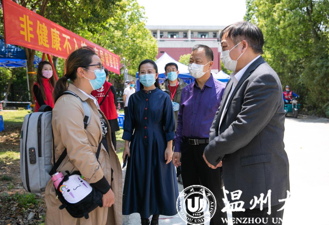 期间,校党委书记谢树华、校长赵敏、党委副书记吴金法等校领导,先后到超豪学区学生报到点、学生寝室、学生食堂等实地查看返校情况,看望首批返校的学生,并叮嘱师生做好个人安全健康防护。温州市教育局白炳兴副书记一行在动车站新澳门六合彩 接站点检查指导接站工作。