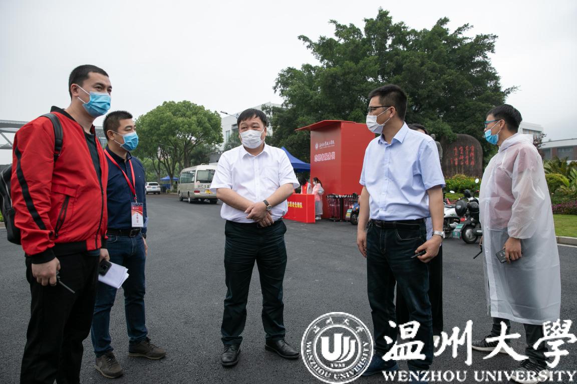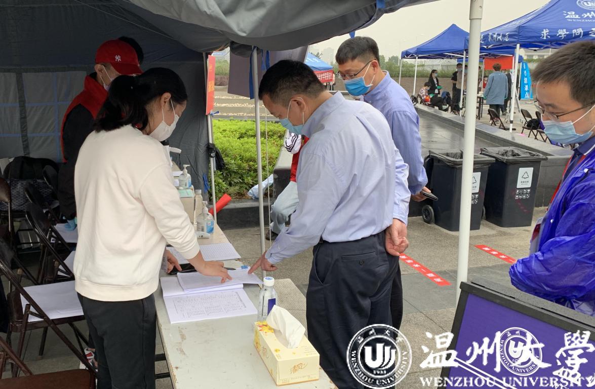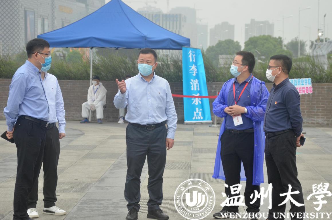 5月7日,校党委书记谢树华来到新澳门六合彩 设在温州动车南站等处的接待点、消杀点和报到点,对报到和接站流程进行检查,并亲切慰问返校学生和接站工作人员。