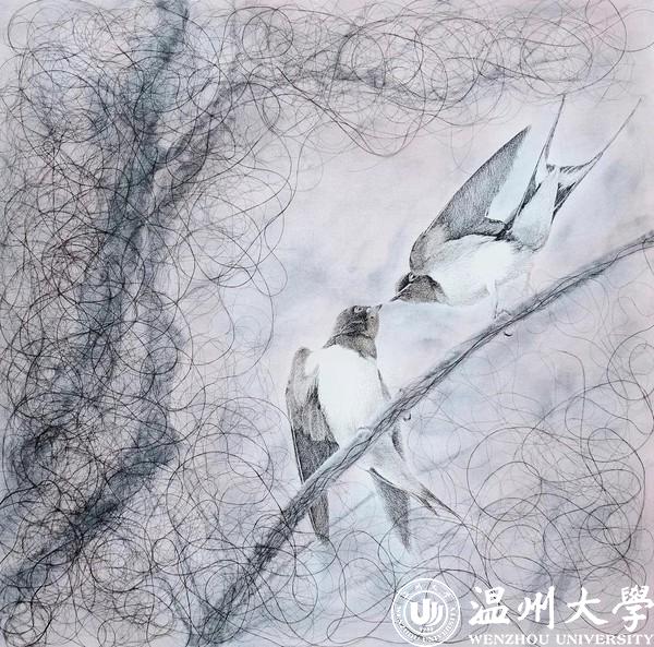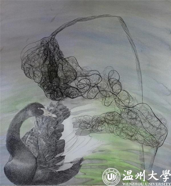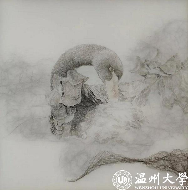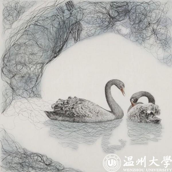从学习制作人物头像开始接触发绣以来,在这几年的创作过程当中,蔡淑明做了各种不同题材不同手法的尝试:从传统的线描的佛教题材,到当代的素描的人物题材,再到抽象写实结合的花鸟题材,似乎处在一种不确定的状态中。但蔡淑明觉得这只是自我定位的过程的一个常态而已。“就像我们一直想着要如何突破传统的束缚,平衡创新和与传统之间的关系,从学生时代面对的版画到如今面对的发绣,这似乎是个永恒的课题。”蔡淑明说,版画的魅力对她来说是它的不确定性,在制作的过程中往往带给人不可预测的惊喜。她将这份带有玩味的创作体验代入发绣的创作中,试图做出有意思的作品出来。