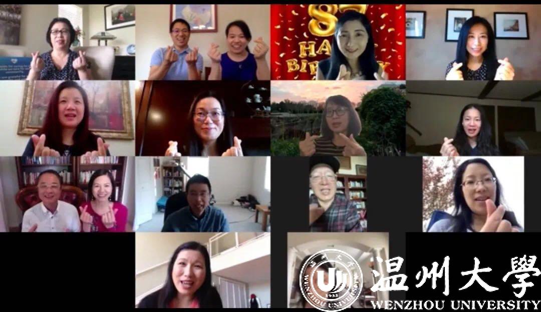 北美校友会云端相会为母校录制视频,为母校送上浓浓祝福。上海校友会以笔会友,将对母校的拳拳之心寄情于翰墨篇籍之中。杭州校友会举办线上公益教育咨询会,为在杭校友、温籍人事提供入学教育政策咨询。宁波校友会齐聚一堂向母校深情表白。各学院也举办了形式多样的庆祝活动,如线上校友分享会、云上音乐会、校歌接力等。