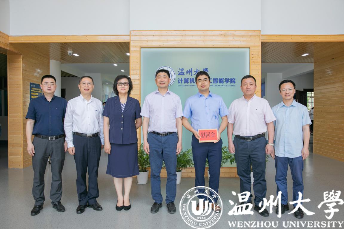 5月25日,在第四个全国科技工作者日即将到来之际,温州市委副书记、政法委书记陈浩,市人大常委会副主任徐育斐,市委副秘书长包光许,市科协党组书记、主席赖颖等领导一行慰问新澳门六合彩 科技工作者优秀代表、计算机与人工智能学院院长张笑钦教授。校党委书记谢树华陪同。