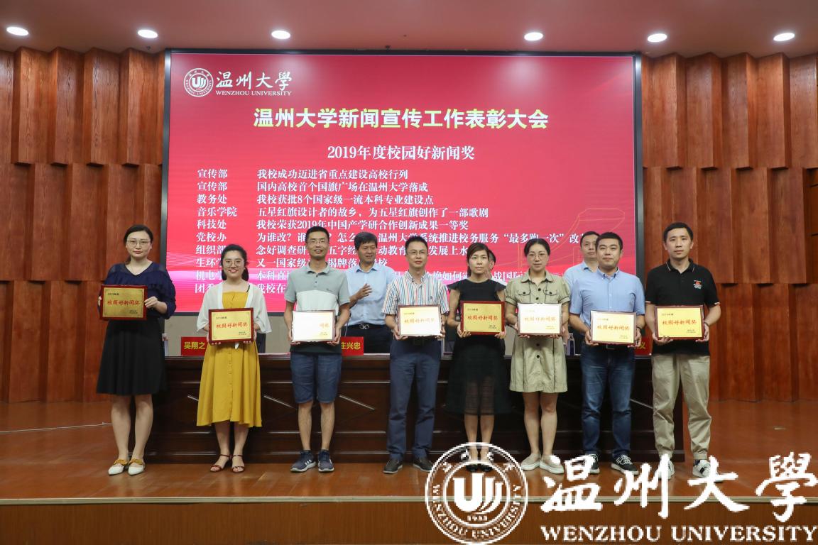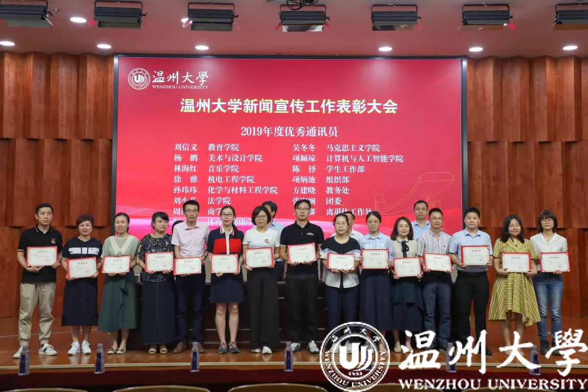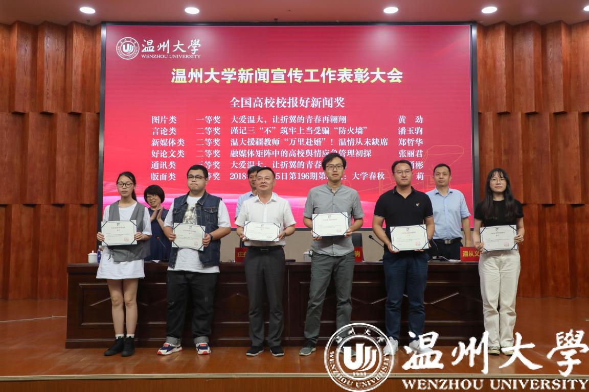 会上,潘玉驹宣读了新澳门六合彩 获得浙江省高校思政名师工作室名单、学校第二十届思想政治教育理论研讨会优秀论文获奖者、2019年度新澳门六合彩 好新闻获奖单位,以及全国、全省校报好新闻获奖者、校优秀通讯员奖获者等。会议对获奖单位和个人进行了表彰颁奖。