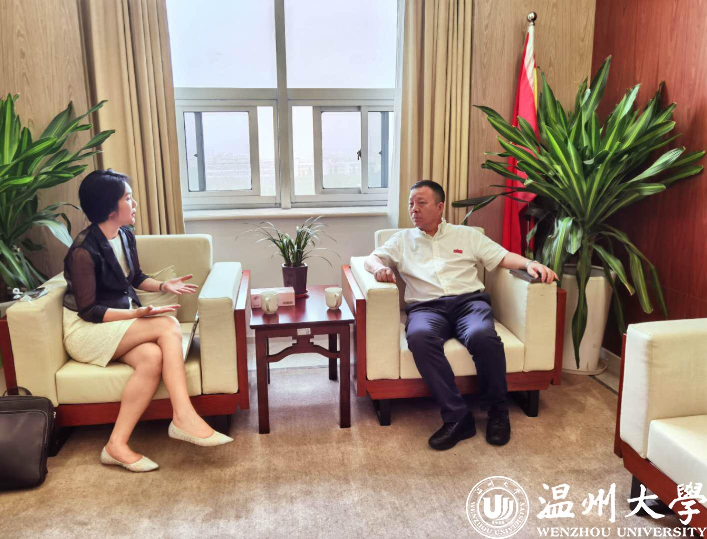 6月22日下午,温州市留学人员和家属联谊会(下称“温州市留联会”)会长、温州市侨联常委卢琼博士来访新澳门六合彩 。校党委书记谢树华热情接待了卢琼,党校办、以“侨”为特色省部共建办相关负责人陪同。