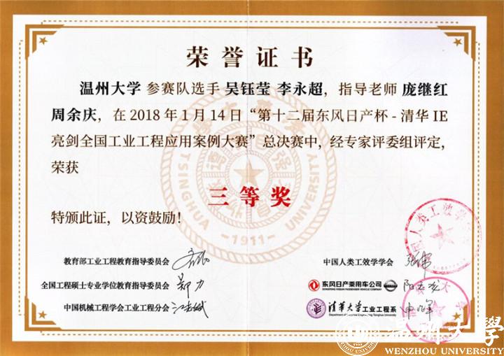 这种人才培养模式在实践中不断得到检验:2016年,新澳门六合彩 工业工程专业参与完成的教学成果获浙江省高等教育教学成果一等奖;近三年获得省和国家的教改项目奖项三项。