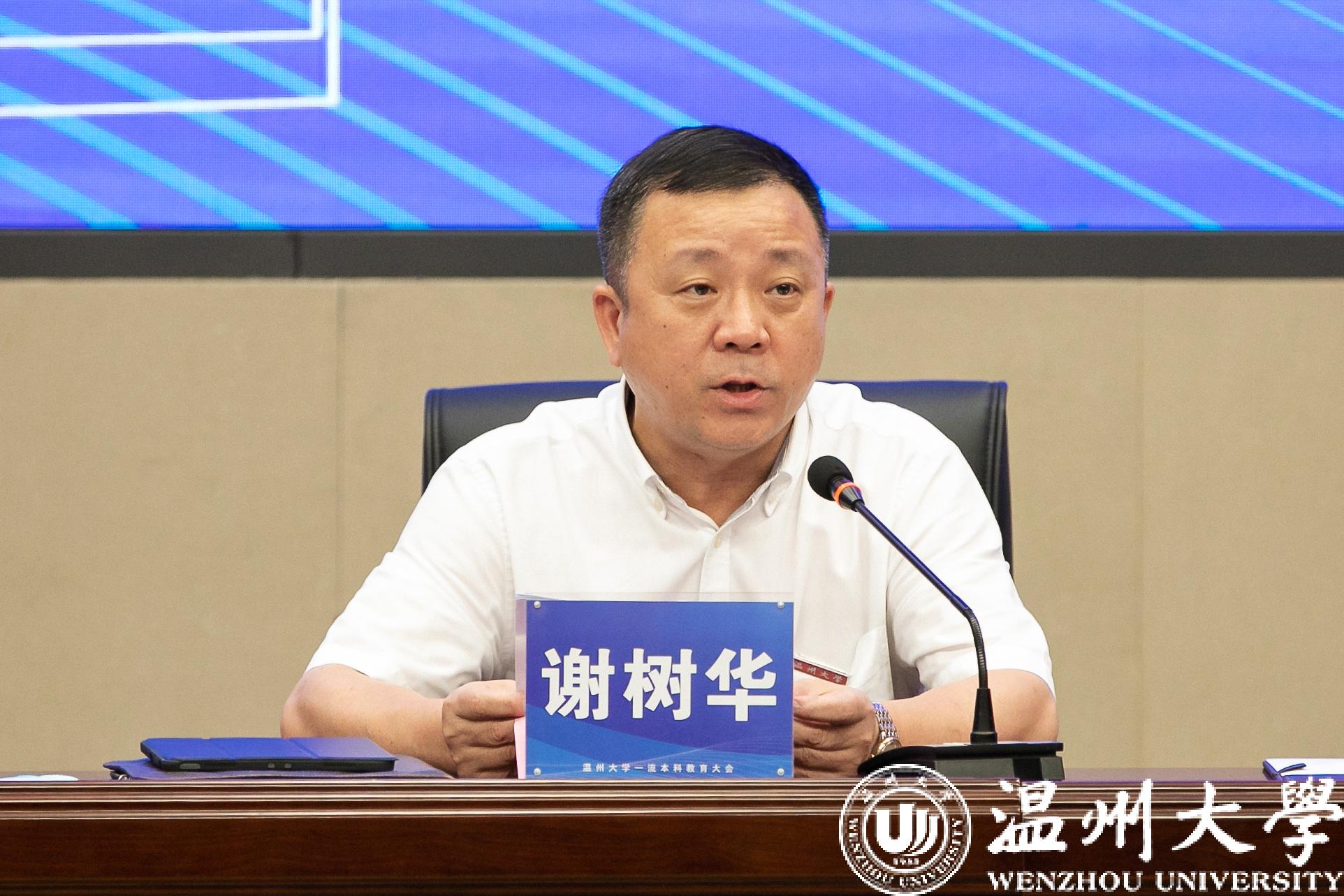 校党委书记谢树华讲话。他就抓好本科教育教学工作、推动学校事业改革发展提出四点意见。一是要充分认识建设一流本科教育的重要意义。建设一流本科教育是高等教育发展的新趋势,是经济社会发展的新期待,也是学校自身发展的新要求。要把本科教育放在人才培养的核心地位,放在教育教学的基础地位,放在学校重中之重的工作地位来抓。二是要全面落实立德树人的根本任务。要强化目标引领,将立德树人的成效作为检验学校一切工作的标准;要树立正确观念,树立“人人发展、全面发展、个性发展、终身发展”的教育质量观;要注重人文教育,一方面是课程中要注重人文教育的设置,另一方面要将人文教育渗透到学生日常教育之中。三是全力打造一流的教师队伍。加快教师队伍的结构优化、能力优化、评价优化,打造一支政治素质过硬、业务能力精湛、育人水平高超、方法技术娴熟的育人队伍。四是更加突出教学的中心地位。重视课程建设,围绕高阶性、创新性、挑战度,重点建好五大“金课”;重视教材建设,建好教材、选好教材、用好教材,让老师教有所用,让学生学有所得;重视课堂教学质量,让课堂从“教师主导”向“学生主体”转变,努力让学生成为具有思辨能力、创造思维、质疑精神的“主动学习者”;重视学风建设,加强目标引导、氛围营造、管理服务,形成“党风带作风、作风促教风、教风优学风”的良性循环生态。