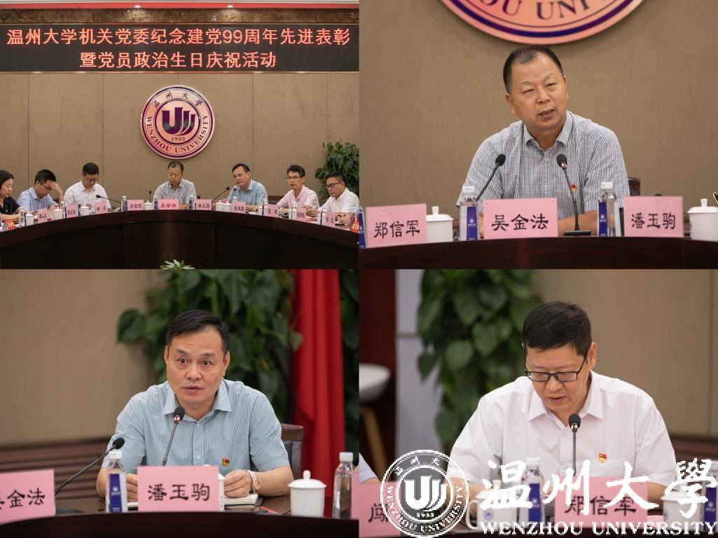 为深入学习贯彻习近平新时代中国特色社会主义思想,巩固拓展“不忘初心、牢记使命”主题教育成果,7月1日下午,机关党委在岩松堂白鹿厅举行庆祝建党99周年先进表彰暨党员政治生日庆祝活动。校党委副书记吴金法,党委委员、宣传部部长潘玉驹,党委委员、组织部部长郑信军出席活动,机关党委委员、机关党委全体支部书记、支部委员以及入党“10年整数倍”的党员代表百余人参加庆祝活动。