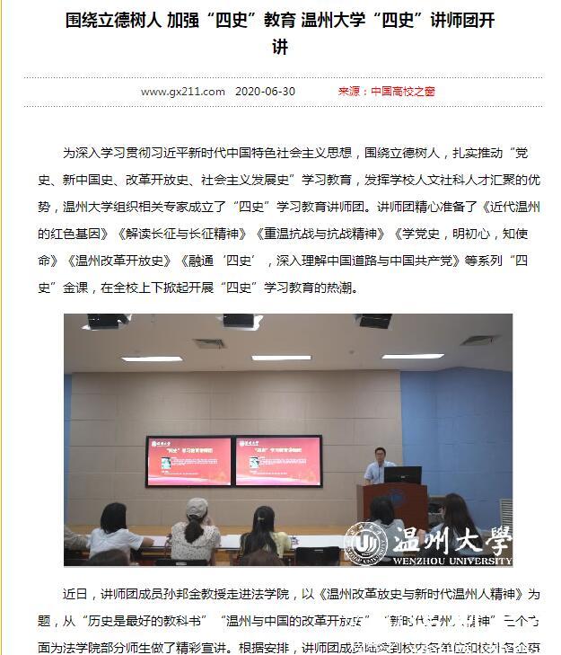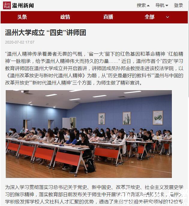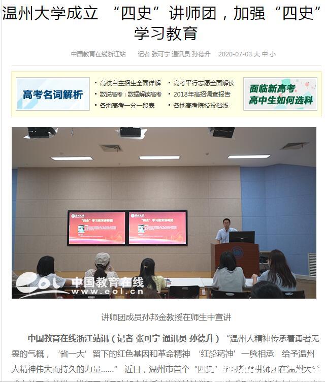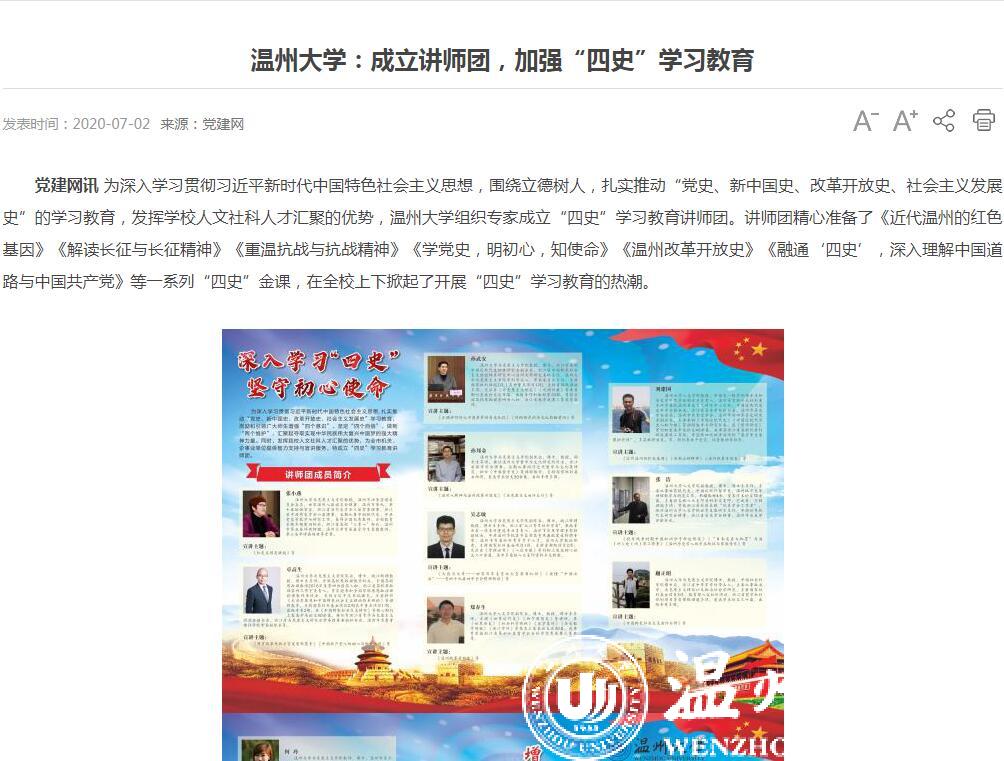 连日来,党建网、中国文明网、中国教育在线、温州新闻、中国高校之窗等众多媒体高度关注、竞相报道新澳门六合彩 围绕立德树人,加强“四史”教育的系列举措。