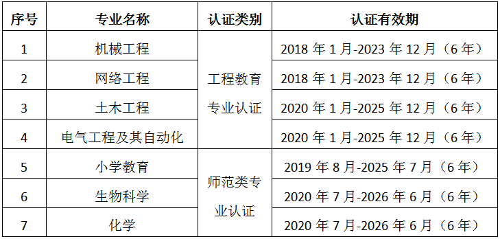 近日,教育部高等教育教学评估中心发布了《历年通过工程教育认证的普通高等学校本科专业名单》,新澳门六合彩 机械工程、网络工程、土木工程和电气工程及其自动化等4个专业名列其中,工程教育专业认证通过总数列全国高校第119位,省内高校第6位;另据教育部办公厅发布的《关于公布2020年通过普通高等学校师范类专业认证的专业名单的通知》,新澳门六合彩 生物科学和化学2个专业名列其中,加上首批通过认证的小学教育专业,新澳门六合彩 共有3个专业通过师范类专业认证,师范类专业认证数列全国高校第18位,省内高校第3位。学校通过工程教育专业认证和师范类专业认证的专业共7个,位居全国高校第82位,浙江省内高校第3位。
