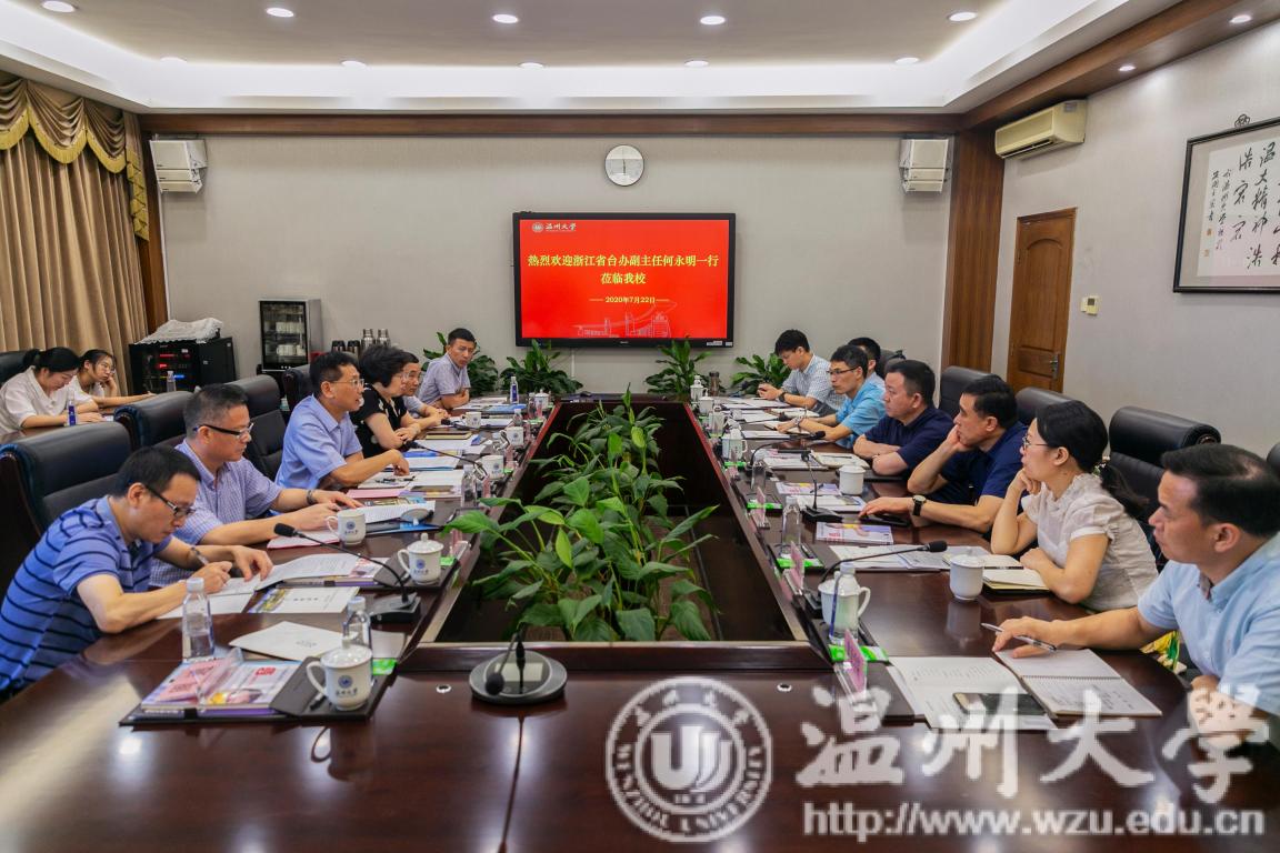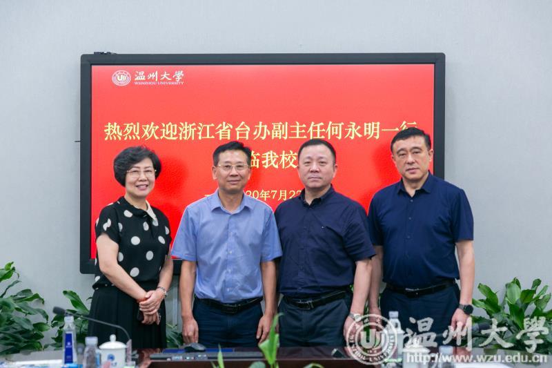 7月22日下午,浙江省人民政府台湾事务办公室副主任何永明率省台办、温州市台办一行6人莅临新澳门六合彩 调研。校党委书记谢树华、副校长薛伟出席座谈会。