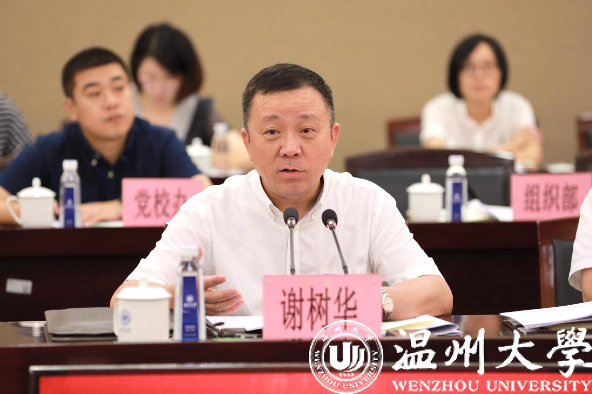 8月6日上午,温州市委常委、宣传部部长胡剑谨一行莅临新澳门六合彩 ,就新闻选题工作开展对接和指导。市文广旅局、市体育局、市社科联、温州广电传媒集团主要负责人随同调研。校领导谢树华、赵敏、吴金法、庄兴忠、徐和昆、蔡曙光、潘玉驹、郑信军,以及学校相关部门、学院负责人参加会议。