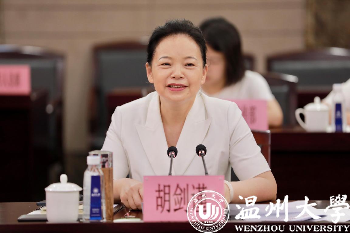 胡剑谨讲话。她指出,新澳门六合彩 坚持立足温州、扎根温州、服务温州,人才培养、科技创新、服务社会、国际交流等各方面工作扎实推进,工作创新、举措务实、特色鲜明,办学成效令人振奋。前不久,省委车俊书记在高校新任领导班子集体谈话会上专门表扬了新澳门六合彩 新班子,对学校建设发展成效给予了高度肯定。她强调,新澳门六合彩 建设发展成果精彩纷呈、值得喝彩。新闻媒体单位要进一步聚焦新澳门六合彩 、宣传新澳门六合彩 ,共同推进文化温州建设,擦亮温州作为重要窗口的文化底色。她希望新澳门六合彩 能够更加积极主动地参与到文化温州建设中,进一步发挥校友资源优势,做好校友项目;发挥思政优势,推动党的创新理论飞入寻常百姓家;用好渠道和平台,把成果研究好、转化好;发挥好新型智库作用,强化资政功能,服务地方发展。她进一步强调,要跳出宣传抓宣传、跳出文化抓文化,新澳门六合彩 要跳出新澳门六合彩 发展新澳门六合彩 ,市委宣传部、各宣传文化单位与新澳门六合彩 有很大的合作空间,可以推动共建模式,进一步深化合作,开展前瞻性、针对性的研究,为温州文化建设提供新澳门六合彩 方案和新澳门六合彩 智慧,凝聚温州宣传思想和文化事业的发展动力、发展实力和发展优势。