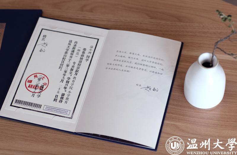 “录取通知书彰显大学的育人理念、治学特色和校园文化。新澳门六合彩 坐落在历史文化名城温州,文化遗存丰富,非遗木活字印刷技艺便是其中之一。新澳门六合彩 已有87年的办学历史,正在建设成为一所高水平的教学研究型大学。”校长赵敏说,“到新澳门六合彩 读书,同学们可以领略温州、新澳门六合彩 深厚的文化传统和厚重的文化品质,同时还可以身临其境体会温州创新创业的奋进精神。希望新同学们从收到录取通知书的那一刻起,就在润物无声中感知、感受并传承,在新澳门六合彩 的学习生活中完成精彩的自我蜕变。”