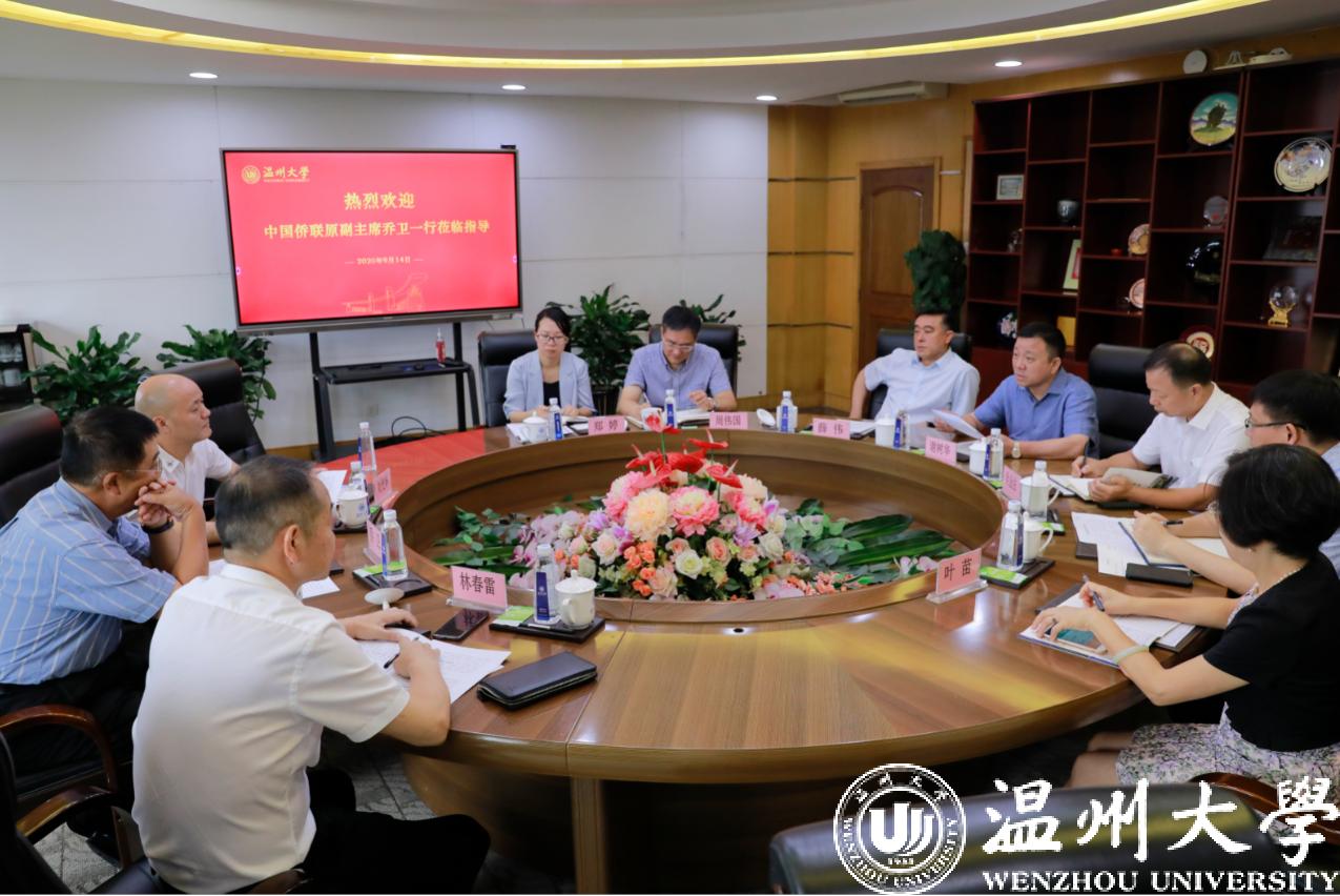 9月14日,中国侨联原副主席乔卫一行莅临新澳门六合彩 调研指导。浙江省侨联副主席刘光华,温州市侨联党组成员、副主席林春雷等随同调研。校党委书记谢树华,党委副书记吴金法,副校长薛伟出席会议。