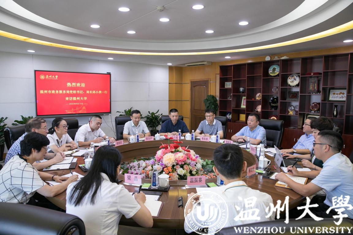 9月17日,温州市政务服务局党组书记、局长邱小侠,副局长詹尔成等一行来访新澳门六合彩 。校党委书记谢树华,副校长蔡曙光出席接待,相关部门负责人参加座谈。