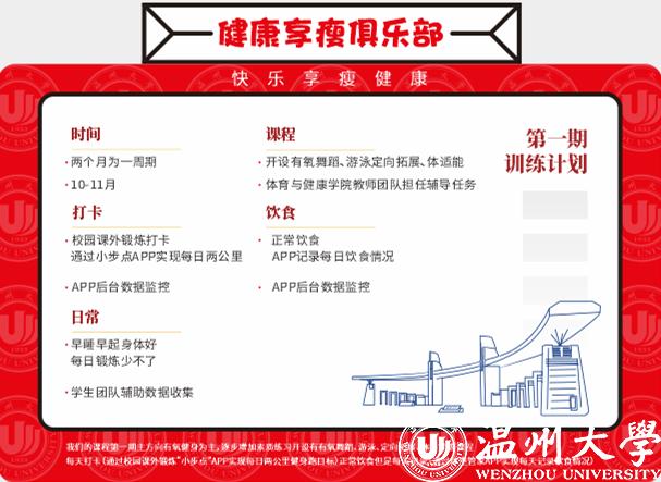 “本来就比较胖,疫情期间运动少了,体重更是失控……暑假里就报了健身房,减了十几斤,但也花了不少钱。上周,学院老师联系我,邀请我免费加入这个训练营。有专业老师量身定制,还有学长监督考核,这次一定能达到目标。”来自化学与材料工程学院2020级的小马同学是新澳门六合彩 健康享瘦俱乐部的首批会员之一。