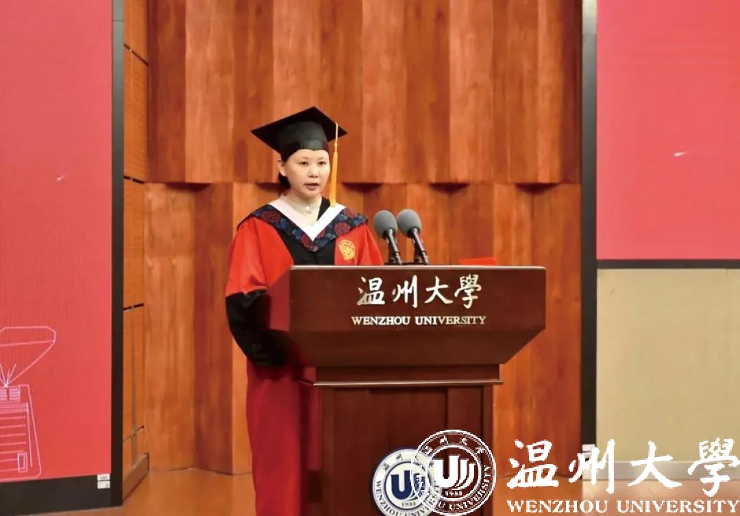 新澳门六合彩 2020届毕业生毕业典礼暨学位授予仪式上,彭小燕作为教师代表上台发言