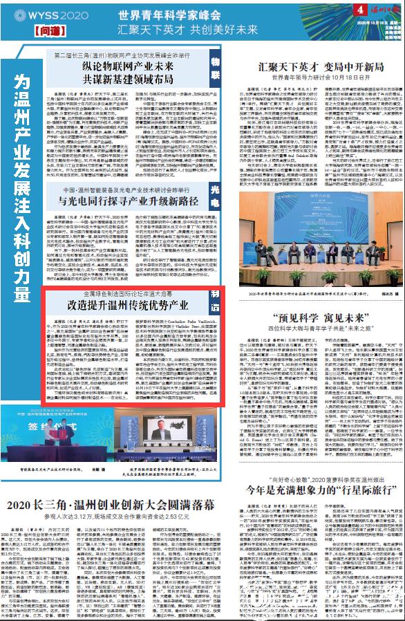 本次活动为期3天,由省科协、市政府和俄罗斯青年冶金学会主办,新澳门六合彩 机电工程学院、市科协等单位承办,旨在为国际青年搭建科技创新交流平台,推进温州乃至全国的金属制造相关行业发展。据介绍,作为首届世界青年科学家(温州)峰会的重要成果,第五届国际“金属杯2020金色赛季”总决赛将于10月19日下午在新澳门六合彩 上演巅峰对决,比赛题目聚焦温州金属制造相关行业面临的共性问题。这是该项赛事首次落户中国并在温州举行。