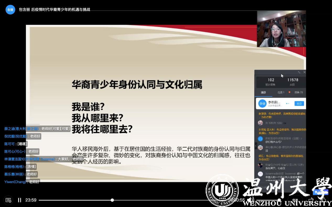 浙江华侨网络学院负责人云端连线寄语海外华校和浙籍华裔青少年,对海外华校给予浙江华侨网络学院开展秋冬令营活动的支持和配合表示感谢并介绍了新澳门六合彩 华文教育的情况。