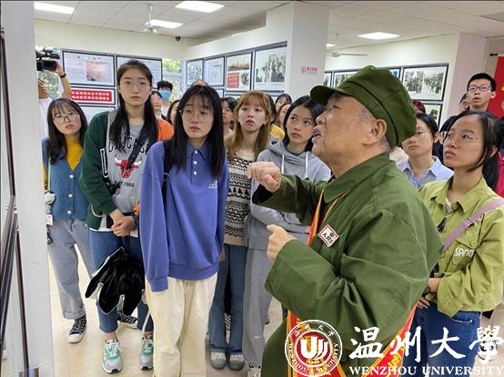 热泪盈眶、掌声雷动,10月23日上午,在纪念中国人民志愿军抗美援朝出国作战70周年之际,新澳门六合彩 师生把一堂特殊的思政课搬到了瑞安市抗美援朝历史教育馆,以慰问志愿军老兵、收看纪念中国人民志愿军抗美援朝出国作战70周年大会的形式,缅怀革命英烈丰功伟绩,学习伟大抗美援朝精神。