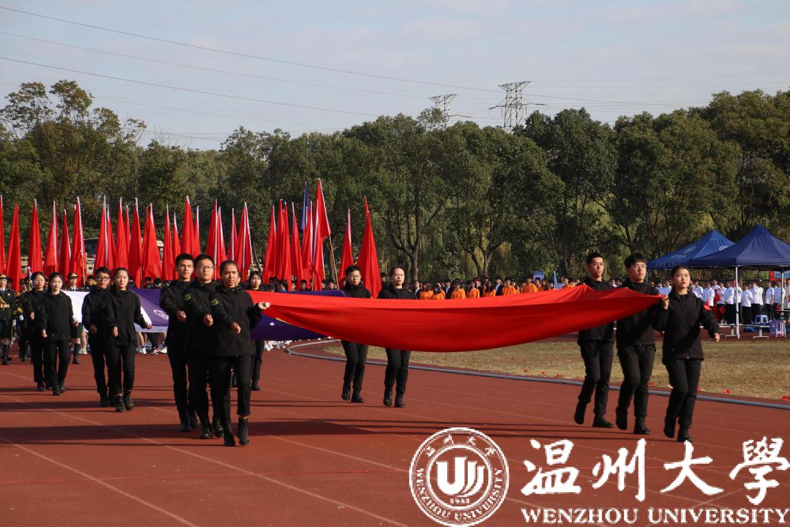 在雄壮的运动员进行曲中,校国旗护卫队迈着矫健的步伐走来。鲜红的国旗在空中挥动,彰显着新澳门六合彩 学子的青春和热血。紧随其后的鲜花队和彩旗队充满朝气和力量。